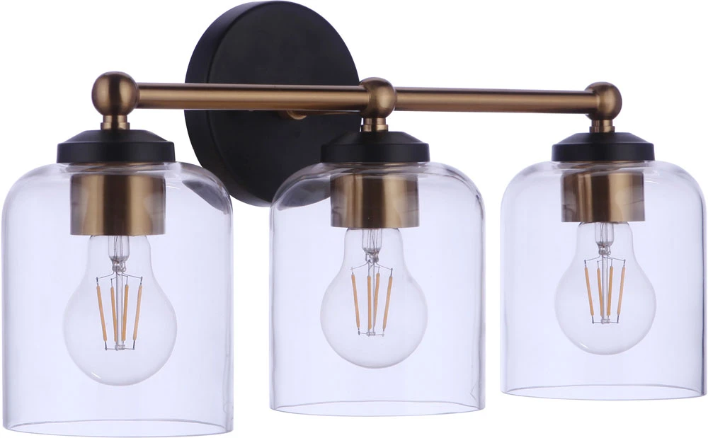 Craftmade Coppa 9″ Contemporary Bathroom Vanity Lighting Flat Black / Satin Brass 18719FBSB3